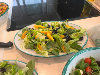 Lunchtimes are deliberately kept relaxed and varied, with a balance of protein, grains and plenty of salad. Across the week you might see:
